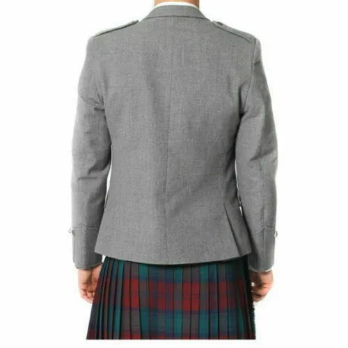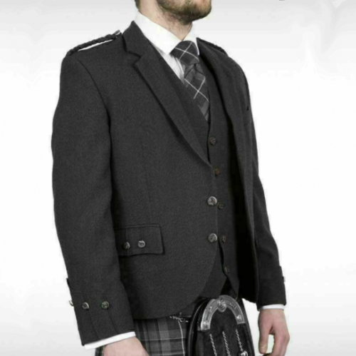 Scottish Argyle Kilt Jacket & Vest Charcoal Grey Pure Wool Men' Wedding Jacket